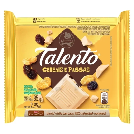 CHOC GAROTO TALENTO AMENDOIN/PASSAS 85G